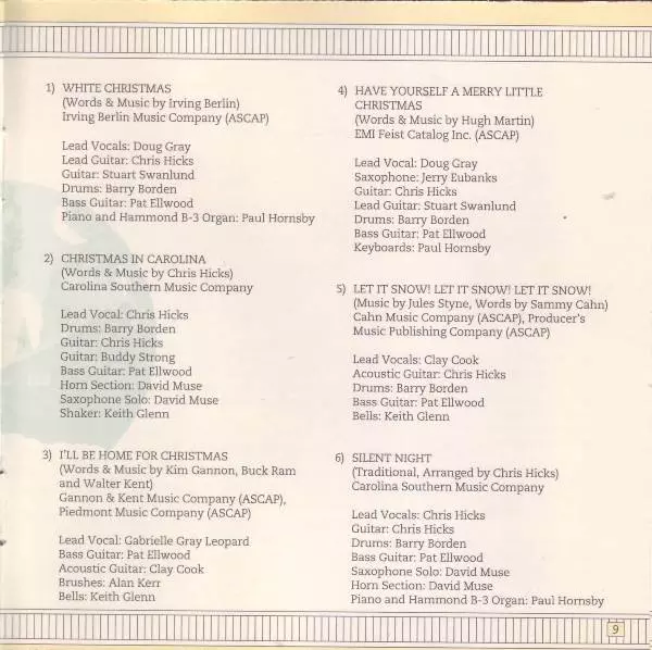 Arranged By Chris Hicks | Bass Guitar Pat Ellwood | Drums Barry Borden | Guitar Chris Hicks | Horn [Horn Section] David Muse | Lead Vocals Chris Hicks | Organ [Hammond B-3] Paul Hornsby | Piano Paul Hornsby | Soloist, Saxophone David Muse | Written By Joseph Mohr | Written-By Franz Gruber