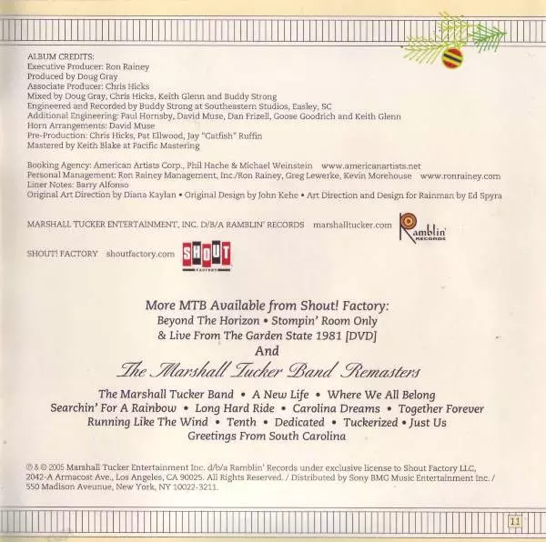 The Marshall Tucker Band: Carolina Christmas Wersja na CD w standardowe wydanie. Ta konkretna edycja została wydana w USA w wydawnictwie Shout! Factory we współpracy z Ramblin' Records (3) dnia 20. listopada 2015. Album sięga do gatunku Rock, Blues-Rock, Southern Rock, Country-Rock i Christmas.