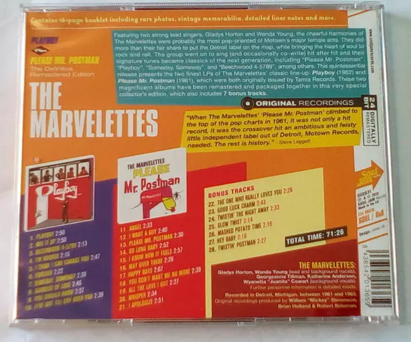 The Marvelettes: Playboy Plus Please Mr. Postman Wersja na CD w zremasterowane wydanie. Ta konkretna edycja została wydana w Europa w wydawnictwie Soul Jam Records dnia 25. czerwca 2013. Album sięga do gatunku Funk / Soul i Rhythm & Blues.