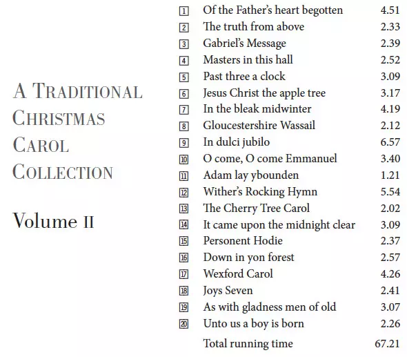 The Sixteen: A Traditional Christmas Carol Collection Volume II Wersja na CD w standardowe wydanie. Ta konkretna edycja została wydana w Europa w wydawnictwie CORO (2) dnia 25. listopada 2010. Album sięga do gatunku Muzyka klasyczna i Folk, World, & Country.