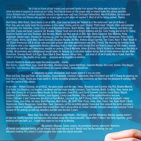 Engineer [Mix Engineer Assisted By] Phil Seaford, Tim Roberts | Engineer [Mix Engineered By] John Hanes | Guitar [Baritone], Bass, Synthesizer [Synth] Tord Overland-Knudsen | Keyboards [Microkorg, Casio] Matthew Murphy | Mixed By Serban Ghenea | Producer [Additional Production] Eric Valentine | Producer [Produced By] The Wombats | Recorded By Eric Valentine, The Wombats | Recorded By [Additional Crowd Noise Recorded By] Daniel Erickson | Synthesizer [Synths] Dan Haggis