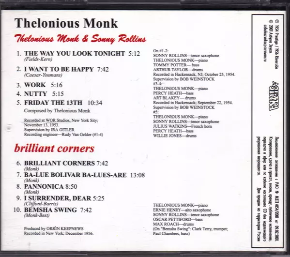 | Tytuł | Thelonious Monk & Sonny Rollins / Brilliant Corners (Two Original LPs On One Cd) LTD |