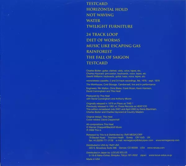 In 1976, Charles Hayward of Gong joined with Charles Bullen and Gareth Williams to form This Heat. Though arising from art-rock and the British school of fusion jazz, This Heat quickly developed into an experimental band largely dependent on tape loops and production tricks. This H...