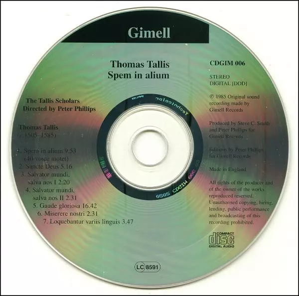 | Wykonawca | Thomas Tallis | The Tallis Scholars | Peter Phillips |