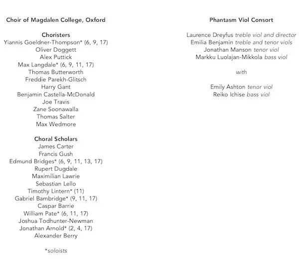| Wykonawca | Phantasm | Thomas Tomkins | Magdalen College Choir Oxford | Daniel Hyde | Laurence Dreyfus |