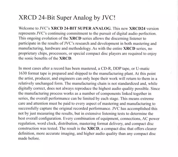 | Więcej informacji | XrCD Digibook Remastered Import US |