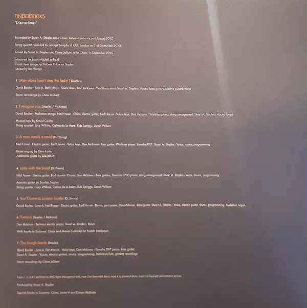 Electric Guitar Neil Fraser (2) | Electric Piano [Yamaha DX7], Electric Piano [Wurlitzer Piano], Bass Guitar Dan McKinna | Guest, Vocals [Guest Singing] Gina Foster | Guitar [Additional Guitar] David Kitt | Keyboards [Volca Keys] Earl Harvin | Vocals [Voice], Drums, Programmed By Stuart A. Staples | Written-By Neil Young