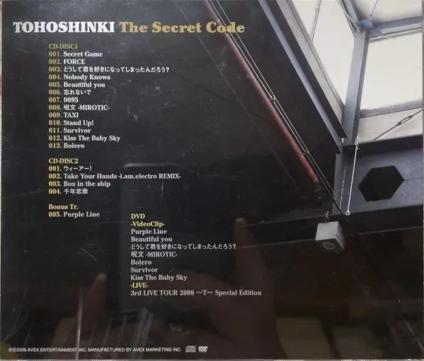 Tohoshinki: The Secret Code Wersja na 2CD/DVD w standardowe wydanie. Ta konkretna edycja została wydana w Japonia w wydawnictwie Rhythm Zone dnia 31. marca 2009. Album sięga do gatunku Pop, Muzyka elektroniczna, Funk / Soul, Synth-Pop, Soul i J-pop.