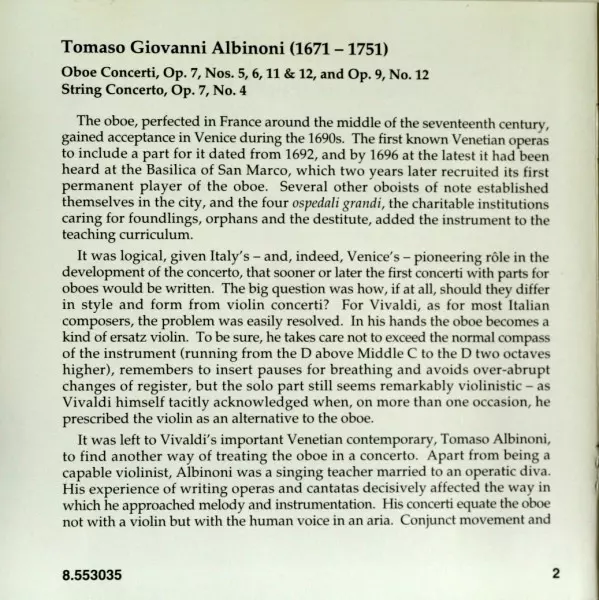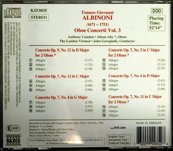 | Wykonawca | Tomaso Albinoni | John Georgiadis | Anthony Camden | The London Virtuosi | Alison Alty |