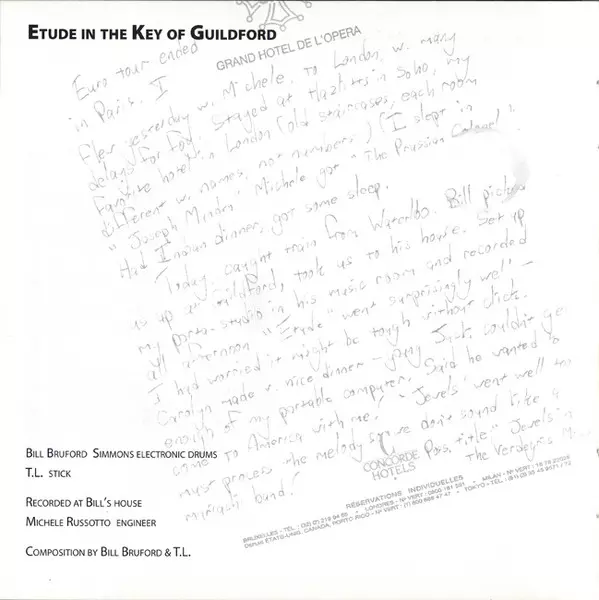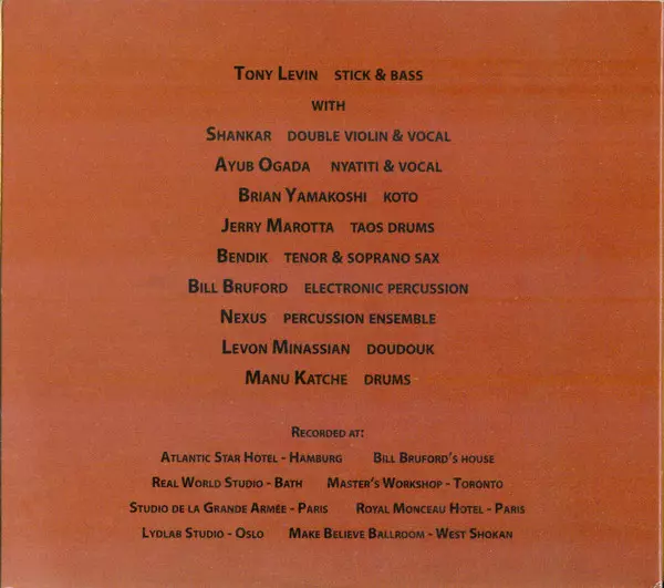 Chapman Stick [Stick] Tony Levin | Composed By Bill Bruford, Tony Levin | Electronic Drums [Simmons Electronic Drums] Bill Bruford | Engineer Michele Russotto
