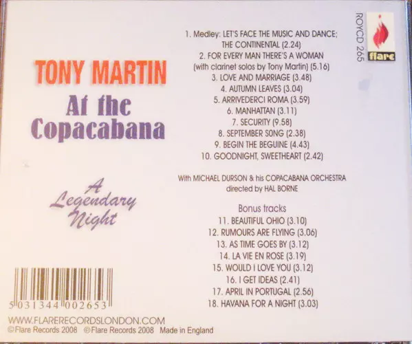 | Tytuł | A Legendary Night. Tony Martin At The Copacabana With Bonus Tracks |