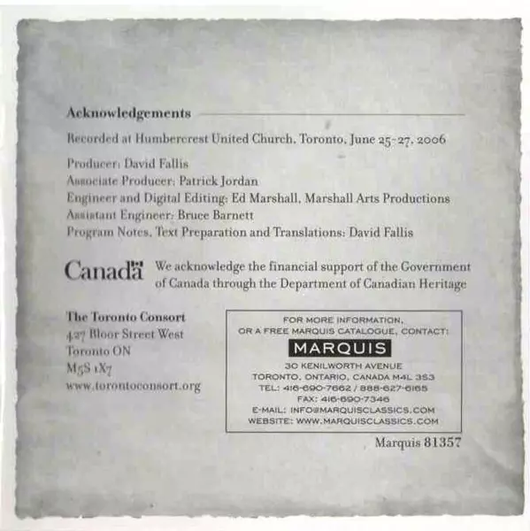 | Wykonawca | Toronto Consort |