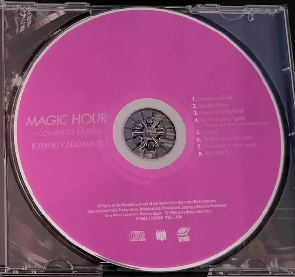 Toshiki Kadomatsu: Magic Hour ~Lovers At Dusk~ Wersja na CD w standardowe wydanie. Ta konkretna edycja została wydana w Japonia w wydawnictwie Ariola we współpracy z Ideak dnia 15. maja 2024. Album sięga do gatunku Pop i City Pop.