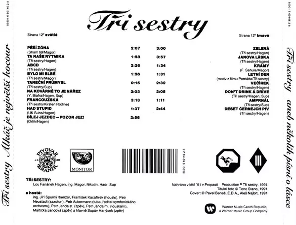Album " Tři Sestry: Alkáč Je Největší Kocour Aneb Několik Písní O Lásce" wydany w 1991 roku to czeski album punkrockowy. Album zawiera 14 utworów, z których wszystkie są w języku czeskim. Album opowiada o miłości i jest doskonałym przykładem punk rocka z początku lat 90-tych.