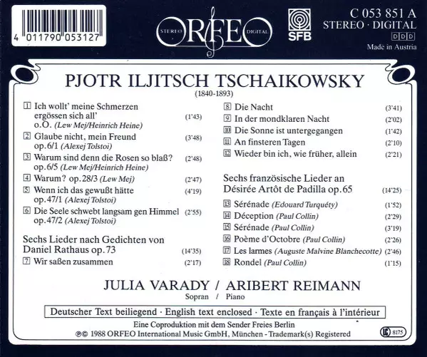 | Wykonawca | Pyotr Ilyich Tchaikovsky | Aribert Reimann | Iulia Várady |