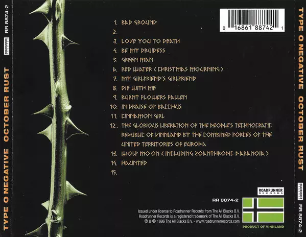 October Rust jest najmniej jawnie nihilistycznym albumem Type O. Większość piosenek to winiety o miłości, seksualności i stracie. Muzycznie "October Rust" jest najbardziej melodyjnym i spójnym dziełem zespołu. Nie ma tu żartobliwych thrashcore'owych linii czy industrialnego brzęczenia jak na poprzednich albumach. Gitarzysta Kenny Hickey nadal do...