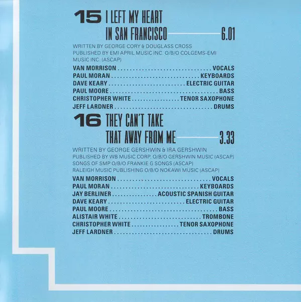 Bass Paul Moore | Drums Jeff Lardner | Electric Guitar Dave Keary | Keyboards Paul Moran (5) | Tenor Saxophone Christopher White (11) | Trombone Alistair White | Vocals Van Morrison | Written-By George & Ira Gershwin