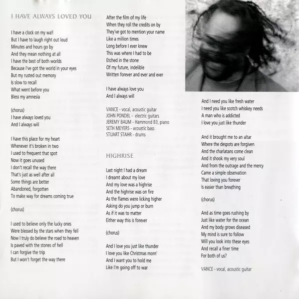 Acoustic Bass Seth Meyers (2) | Drums Stuart Stahr | Electric Guitar [Electric Guitars] John Pondel | Organ [Hammond B3], Piano Jeremy Baum | Vocals [Vocal], Acoustic Guitar Vance Gilbert