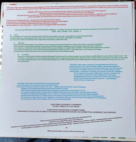 | Tytuł | 2015-2025 Les Disques Bongo Joe 10 Years of Sonic Explorations CLR |