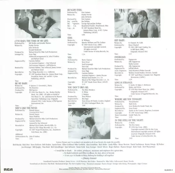 | A1 | Jennifer Warnes, Bill Medley: (I've Had) The Time Of My Life | 4:47 min | |