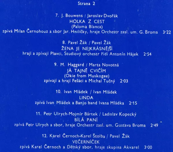 | Backing Band Kardinálové | Leader Zdeněk Merta | Lyrics By [Czech] Pavel Vrba | Vocals Miroslav Dudáček | Written-By Rafael Gil Domínguez | |||