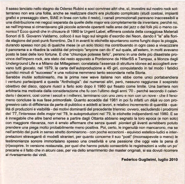 | Tytuł | L'Anthologia New Wave (Punk E Post-Punk, 1977-1980) |
