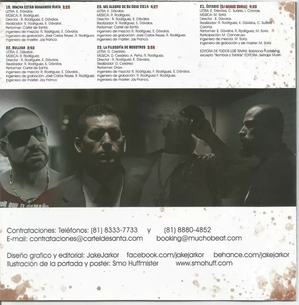 | Directed By Eduardo Dávalos, Román Rodríguez (3) | Lyrics By Eduardo Dávalos | Mastered By Jay Franco | Mixed By Eduardo Dávalos, Román Rodríguez (3) | Music By Eduardo Dávalos, Román Rodríguez (3) | Performer Cartel De Santa | Realization Eduardo Dávalos, Román Rodríguez (3) | Recorded By José Carlos Reyes, Román Rodríguez (3) | |||
