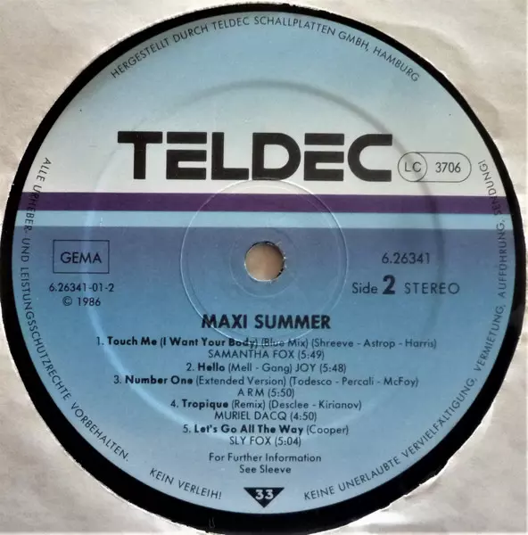 | B1 | Samantha Fox: Touch Me (I Want Your Body, Blue Mix) | 5:49 min | |