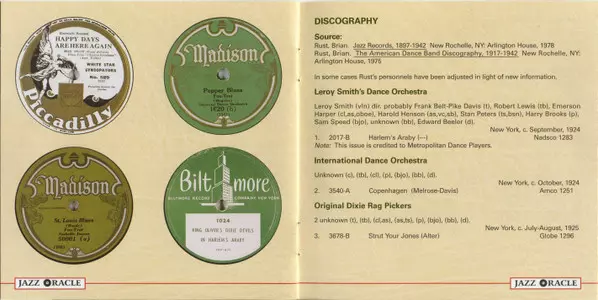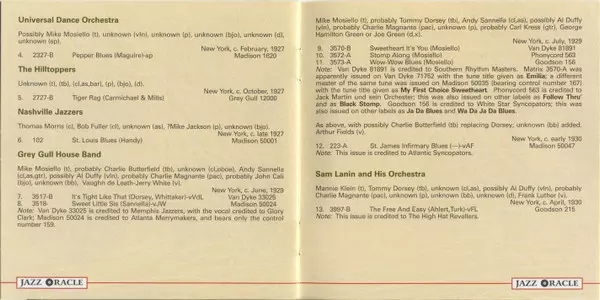 | Alto Saxophone, Banjo Unknown Artist | Clarinet Bob Fuller | Cornet Thomas Morris | Piano Mike Jackson (4) | |||