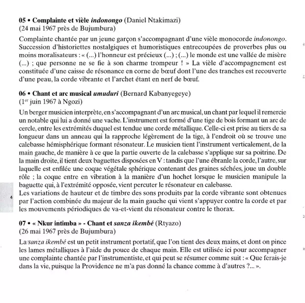 | 5 | Daniel Ntakimazi: Complainte Et Vièle Indonongo = Lament With Indonongo Fiddle Accompaniment | 2:33 min | |