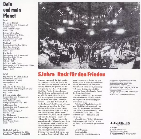 | CD 4: Dein Und Mein Planet - 5 Jahre Rock Für Den Frieden | |||