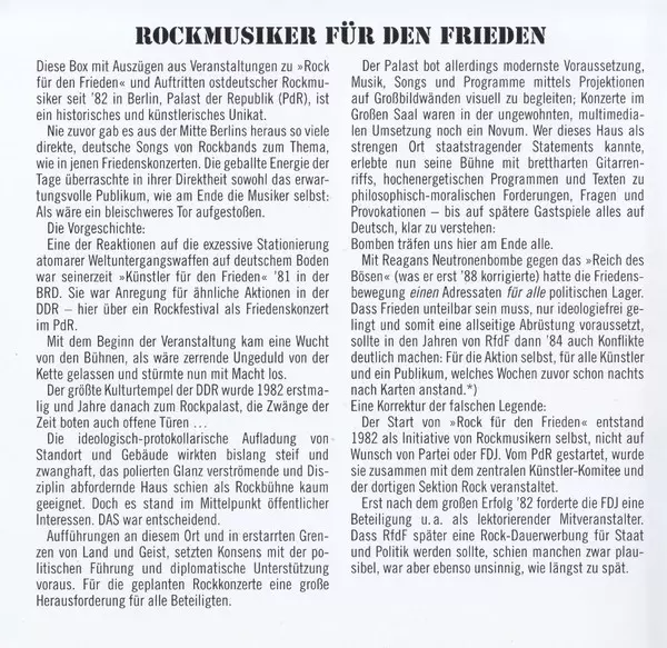 | CD 1: Rock Für Den Frieden Live '82 | |||