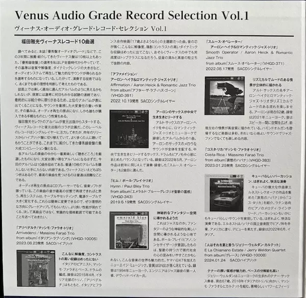 | Tytuł | Venus Audio Grade Record Selection Vol. 1 - By Masamitsu Fukuda LTD |