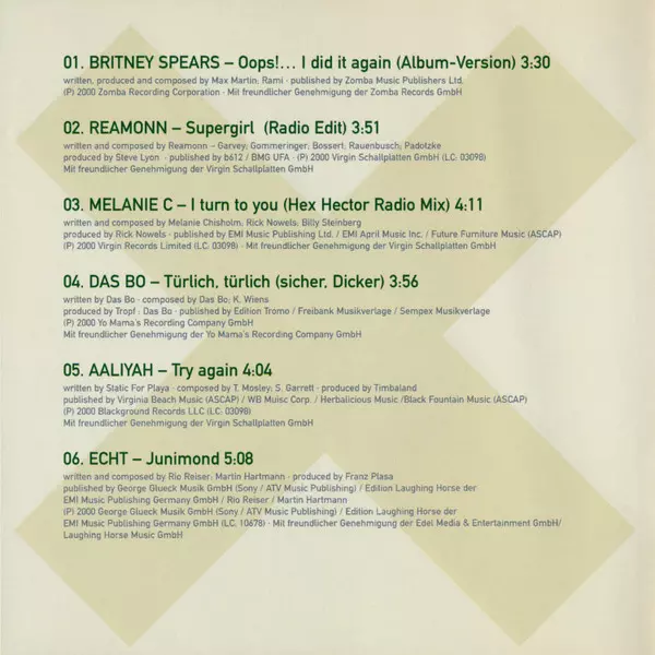 | 1 | Britney Spears: Oops! ... I Did It Again (Album-Version) | 3:30 min | |