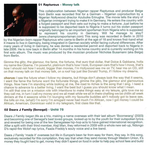 | Lyrics By, Music By Didier Awadi | Rap [Featuring] Kirikou | |||
