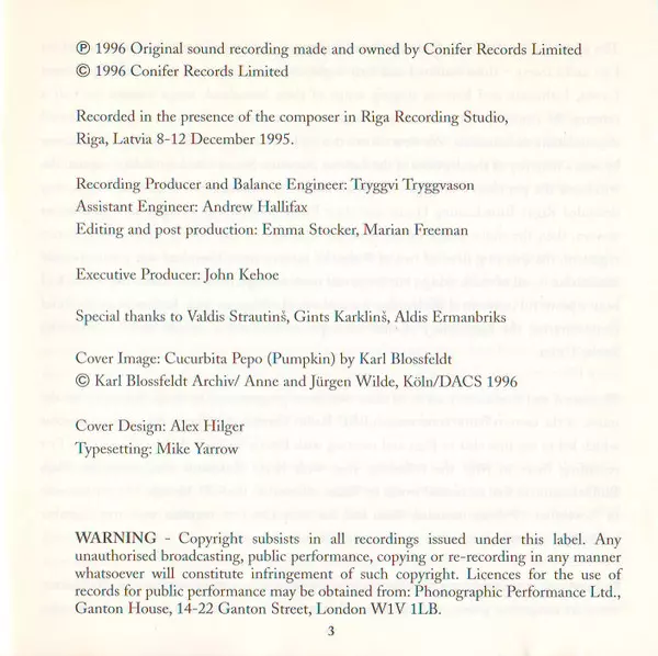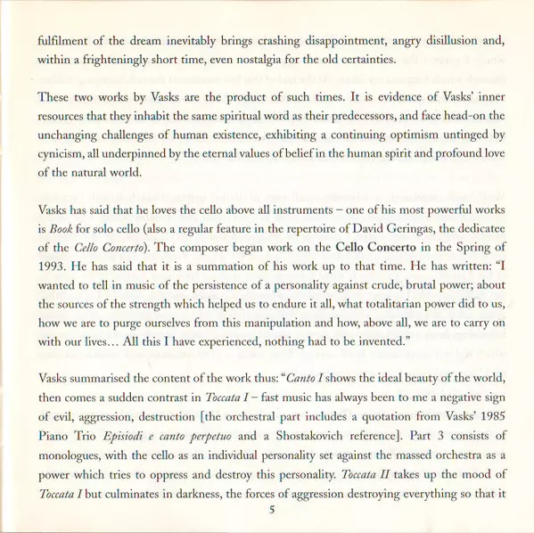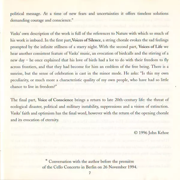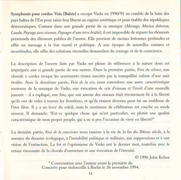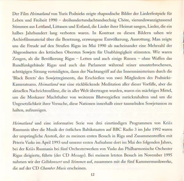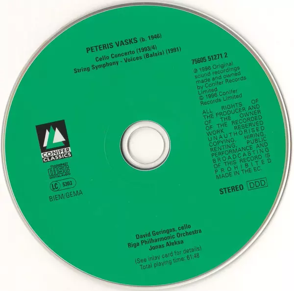 | Wykonawca | Pēteris Vasks | David Geringas | Riga Philharmonic Orchestra | Jonas Aleksa |