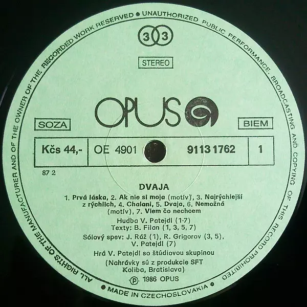 | Więcej informacji | 1987 Original Pressing (Czechoslovakia) |