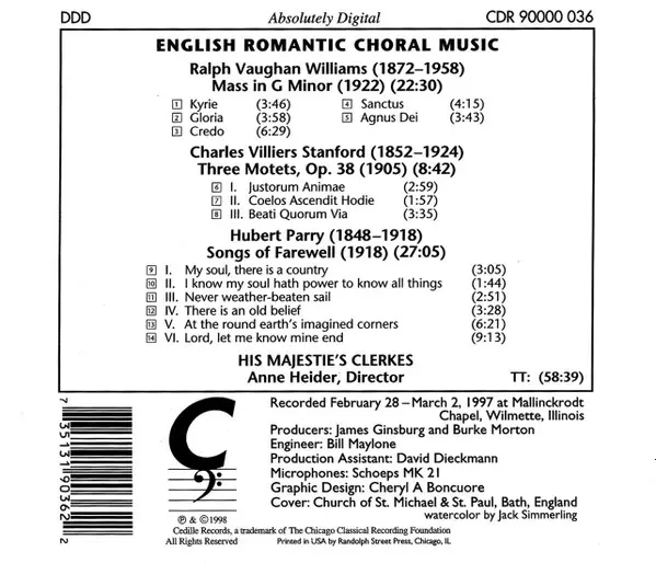 Wykonawca | Ralph Vaughan Williams | Charles Villiers Stanford | Charles Hubert Hastings Parry | Anne Heider | His Majestie's Clerkes |