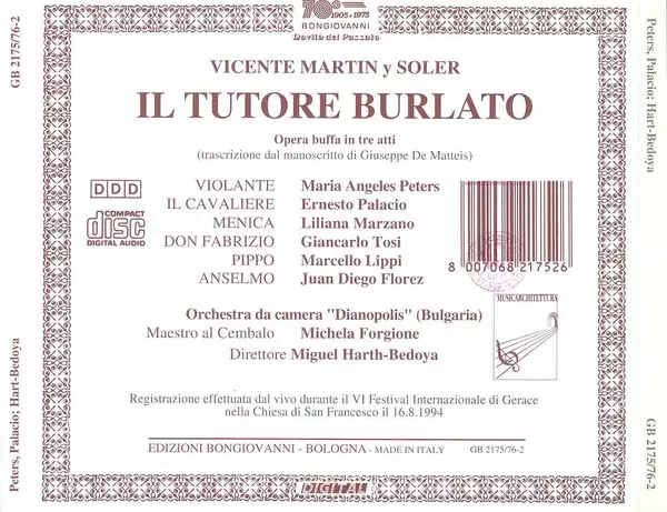 | Wykonawca | Juan Diego Florez | Miguel Harth-Bedoya | Vicente Martin Y Soler | Marcello Lippi | Maria Angeles Peters | Ernesto Palacio | Liliana Marzano | Giancarlo Tosi | Chamber Orchestra Dianopolis |