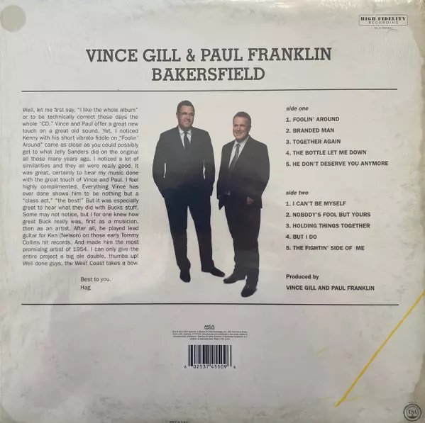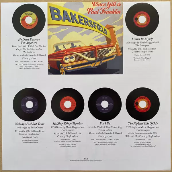 Vince Gill: Bakersfield Wersja na winylu LP w standardowe wydanie. Ta konkretna edycja została wydana w USA w wydawnictwie MCA Nashville dnia 30. lipca 2013. Album sięga do gatunku Folk, World, & Country, Country i Bakersfield Sound.