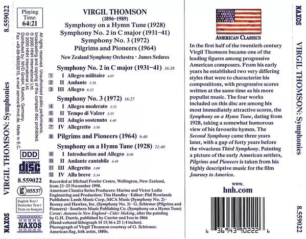 | Wykonawca | The New Zealand Symphony Orchestra | Virgil Thomson | James Sedares |