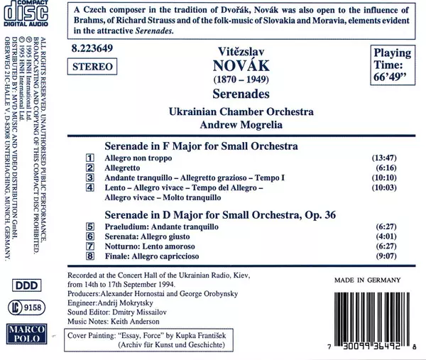 | Wykonawca | Vítězslav Novák | Andrew Mogrelia | Ukrainian Chamber Orchestra |