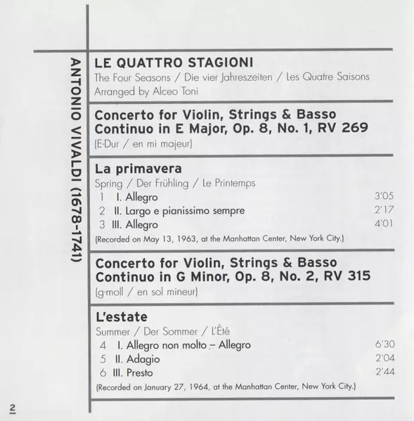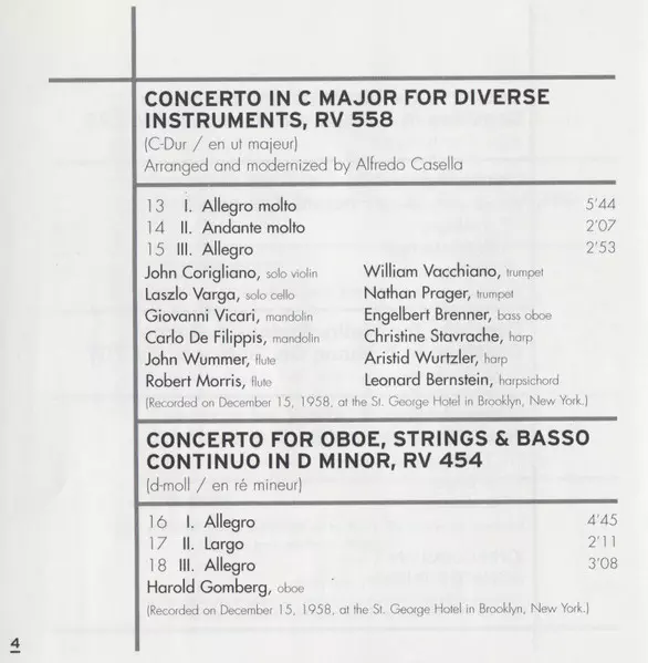 | Tytuł | The Four Seasons (Le Quattro Stagioni) / Concerto For Diverse Instruments / Oboe Concerto / Flute Concerto |