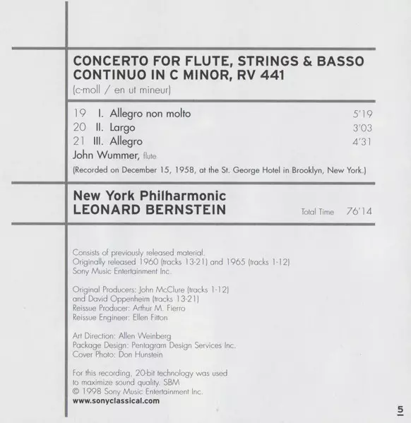 | Wykonawca | Antonio Vivaldi | Leonard Bernstein | New York Philharmonic |