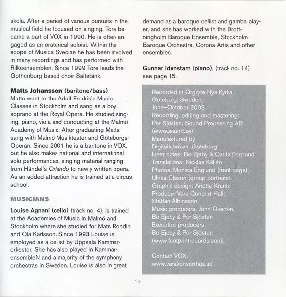 | Wykonawca | Vokalkvartetten Vox |