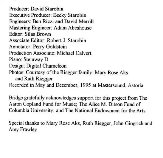 | Wykonawca | Gilbert Kalish | New York Woodwind Quintet | Wallingford Riegger |