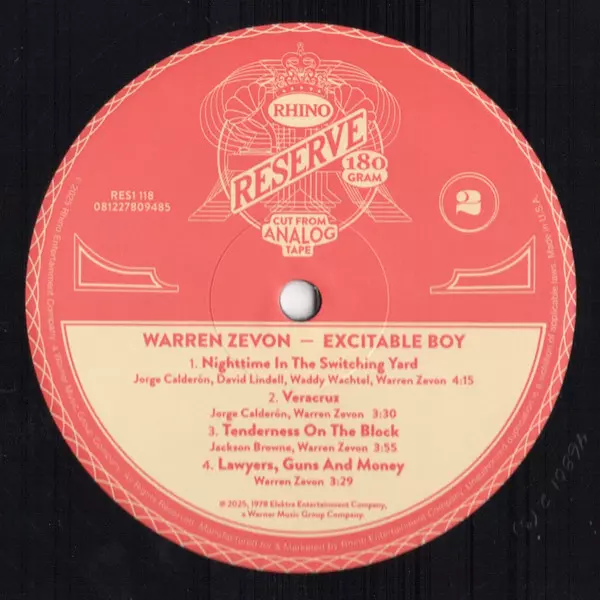 Warren Zevon: Excitable Boy Wersja na winylu LP w standardowe wydanie. Ta konkretna edycja została wydana w USA w wydawnictwie Asylum Records we współpracy z Rhino Records (2) dnia 31. października 2025. Album sięga do gatunku Rock i Pop Rock.
