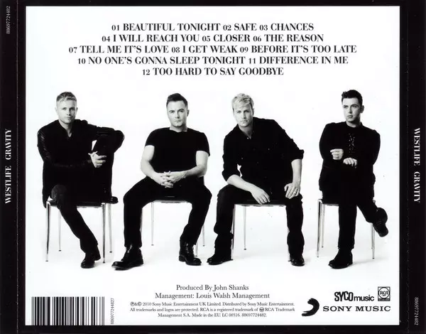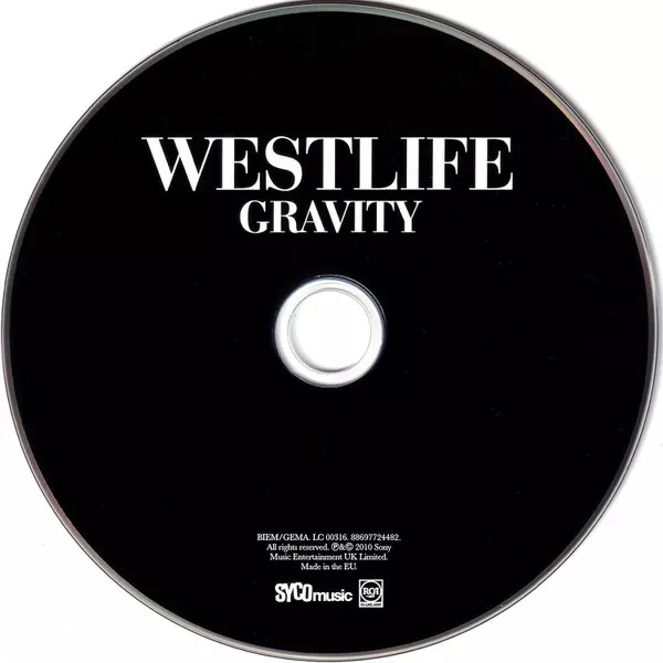 Westlife: Gravity Wersja na CD w standardowe wydanie. Ta konkretna edycja została wydana w Europa w wydawnictwie Syco Music we współpracy z RCA Label Group i Sony Music dnia 1. czerwca 2015. Album sięga do gatunku Rock, Pop, Ballada i Pop Rock.