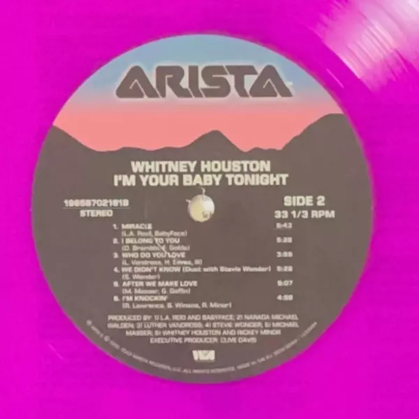 Whitney Houston: I'm Your Baby Tonight LTD | CLR Wersja na winylu LP w ograniczone kolorowane wydanie. Ta konkretna edycja została wydana w Europa w wydawnictwie Arista dnia 24. listopada 2023.
