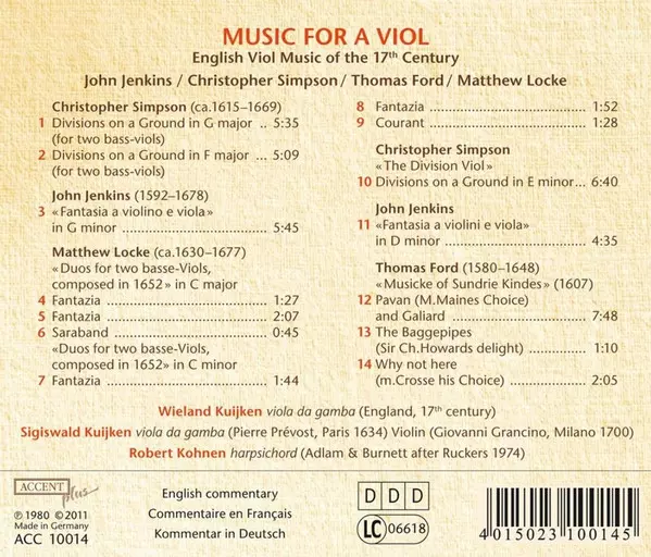 | Tytuł | Music For A Viol - English Viol Music Of The 17th Century |